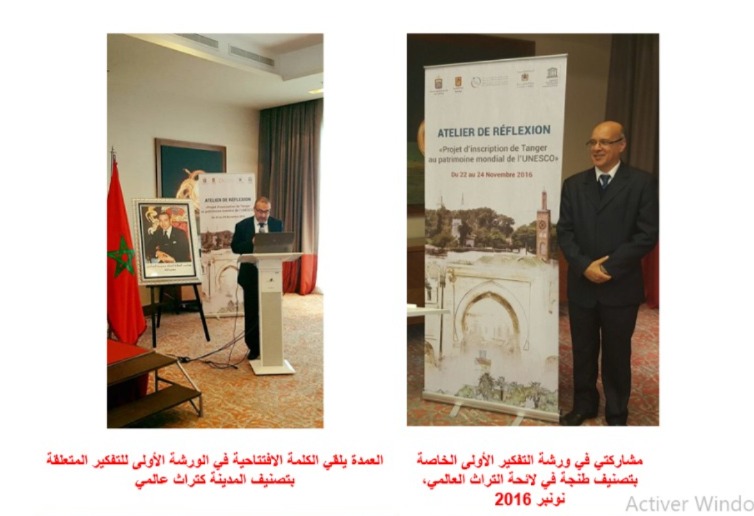 وهكذا نظم اليوم الأول في 22 نونبر 2016 لورشة التفكير الأولى الخاصة بتسجيل طنجة في لائحة التراث العالمي، أي بعد عام من الترتيبات. وبعدما كانت الجماعة مهمشة في البداية، أصبحت من الهيئات الرئيسية العاملة على ملف تصنيف المدينة. تميز اليوم الأول بكلمة العمدة في الجلسة الافتتاحية وبمداخلات جد هامة من خبراء اليونسكو وغيرهم. وفي نهاية اليوم كانت مداخلتي هي الأخيرة والتي كانت تحت عنوان “الرأسمال الجغرافي لطنجة أو طنجة هبة جغرافيتها”، اذ أن الجغرافيا هي التي صنعت تاريخ المدينة، حيث عرضت من خلالها أهمية التراث الطبيعي، الذي غالبا ما نجده لا يفترق عن التراث الثقافي، كما بينت أهمية الموقع الجغرافي للمدينة الذي جعل منها ممرا للحضارات وللطيور والحيتان والأسماك وللعناصر الديمغرافية المختلطة. في المناقشة تدخل أحد الخبراء الأجانب وأبدى تأييده لمحتوى مداخلتي.